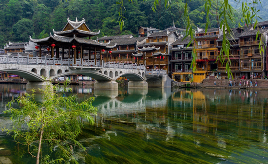 | 下午 | ![]() 后于土司宴廳享用喜樂【土司宴】,全席共十五道,即三個一:三下鍋、野菜湯、土家點心,三個四:四個涼菜、四個配菜、四個野菜 。十五道連菜帶湯,章法有序,還有土家阿哥阿妹歌聲敬酒祝福,好不熱鬧。 用完餐后游覽【土司城】(景區(qū)內(nèi)游覽1.5小時,此景點為我社贈送,未游覽不退減任何費用亦不享受門票優(yōu)惠),土司城內(nèi)園林藝術(shù)豐富多彩,建筑多為木石結(jié)構(gòu),特別是沖天樓,九重十二層樓高48米,曾榮獲“九重天”、“千人毛古斯”兩項世界吉尼斯之最,還有神秘的祭祖舞蹈、哭嫁等土家民俗表演,匯集悠久燦爛的湘西土司文化及土家民族。14:00乘車經(jīng)張花高速赴【鳳凰古城】后入住酒店,晚上自由活動。(可自行欣賞美麗的鳳凰夜景,或走進酒吧一條街為古城增添喧鬧,或閑坐一隅感受古城的悠閑寧靜。) |