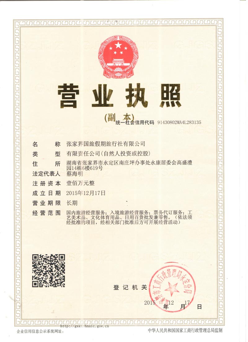 全國優(yōu)秀旅行社中國馳名商標國家級青年文明號單位張家界國旅假期旅行社